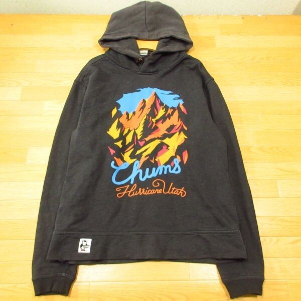 > ◎CHUMS チャムス パーカー スウェット フーディー ボタン留め アウトドア キャンプ メンズ 黒 ブラック Sサイズ◆AA5046