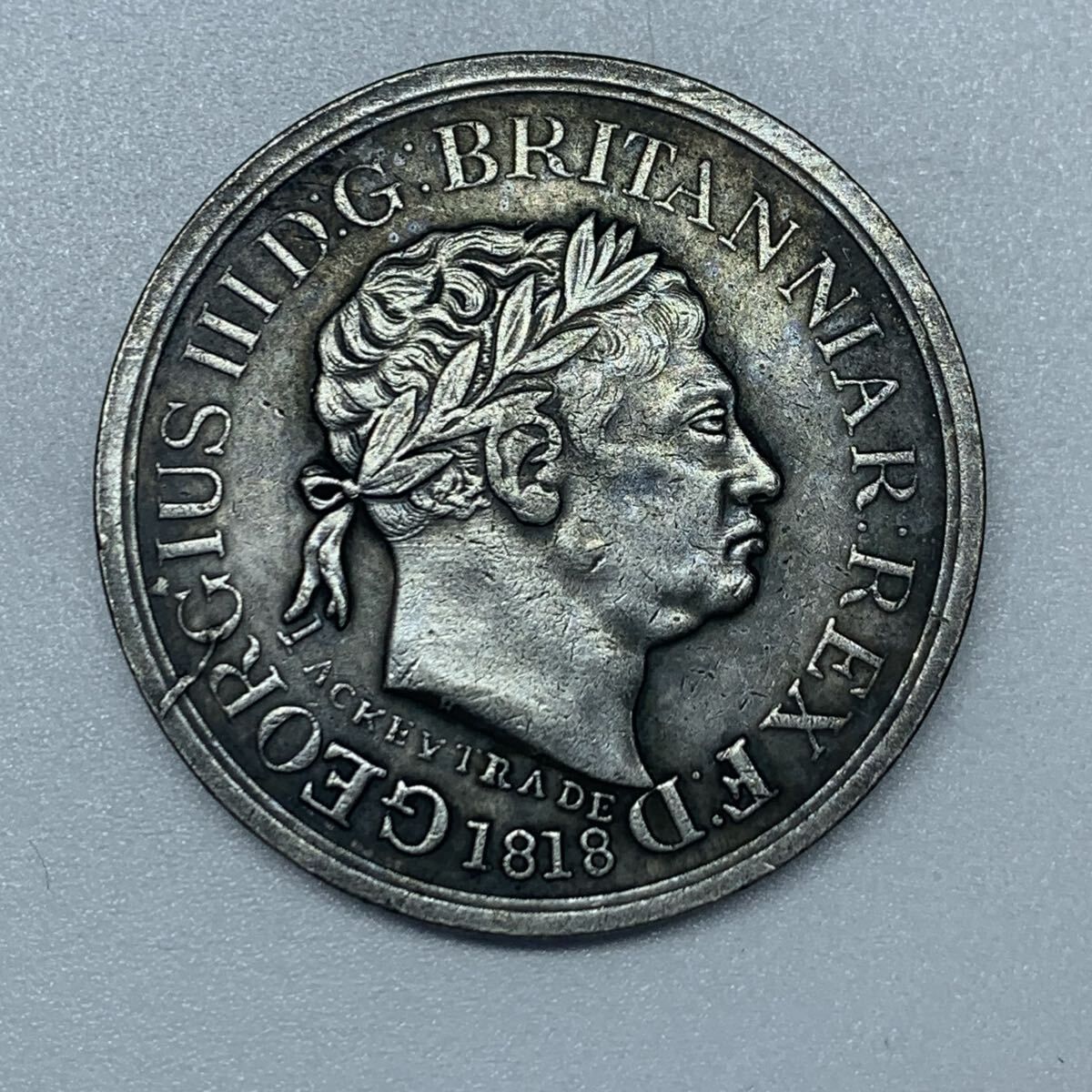 - 1818年 イギリス 古銭 ジョージ王子3世 竜退治 大型銀貨 記念硬貨 貿易銀 アンティークコイン w163