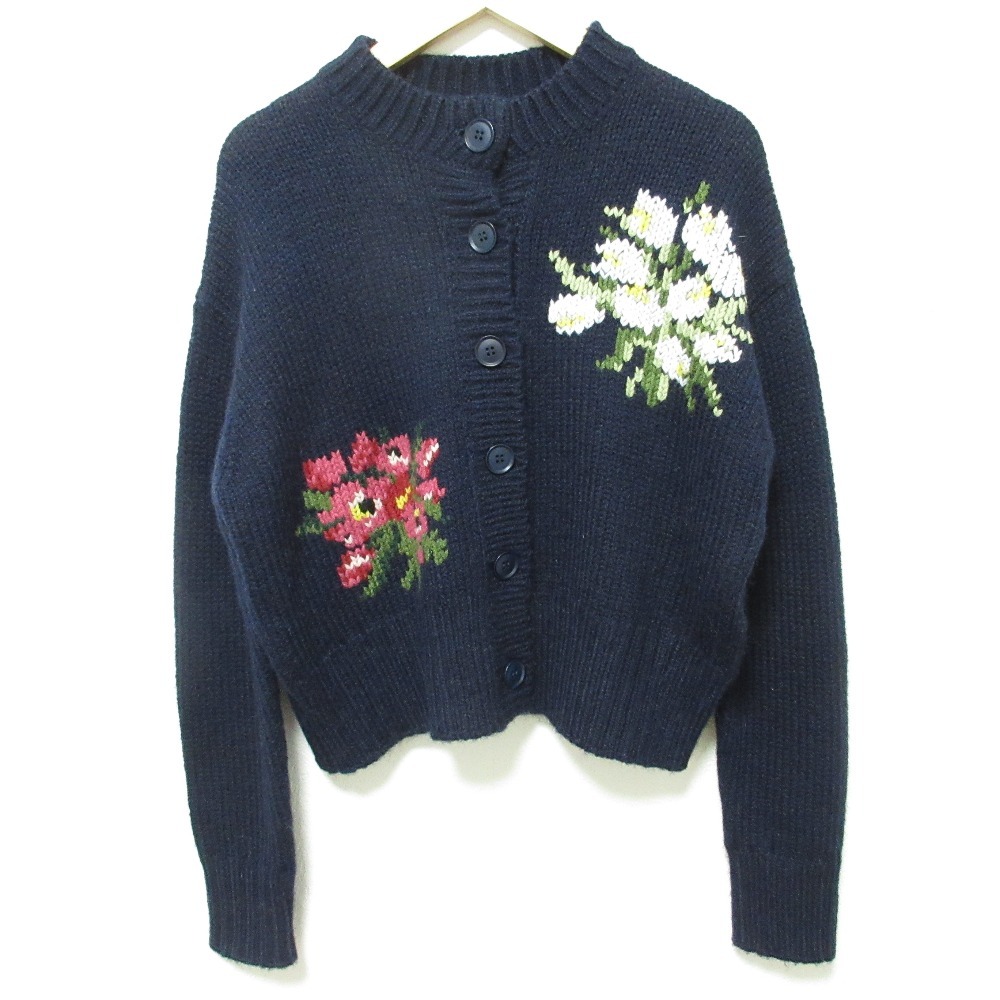 - 美品 セブンテン バイ ミホカワヒト ケイタマルヤマコラボ フラワー刺繍 ニットカーディガン サイズ1 ネイビー