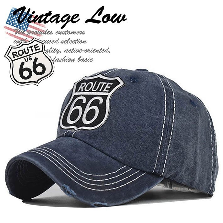 - ROUTE66 キャップ ローキャップ 帽子 メンズ レディース アメカジ おしゃれ ルート66 アメリカ USA 7987848 ネイビー 新品 1円 スタート