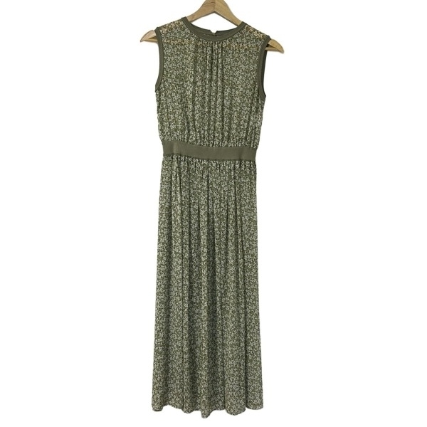 > アナイ ANAYI サイズ36 S - カーキ×白×マルチ レディース クルーネック/ノースリーブ/ロング/花柄/ウエストゴム ワンピース