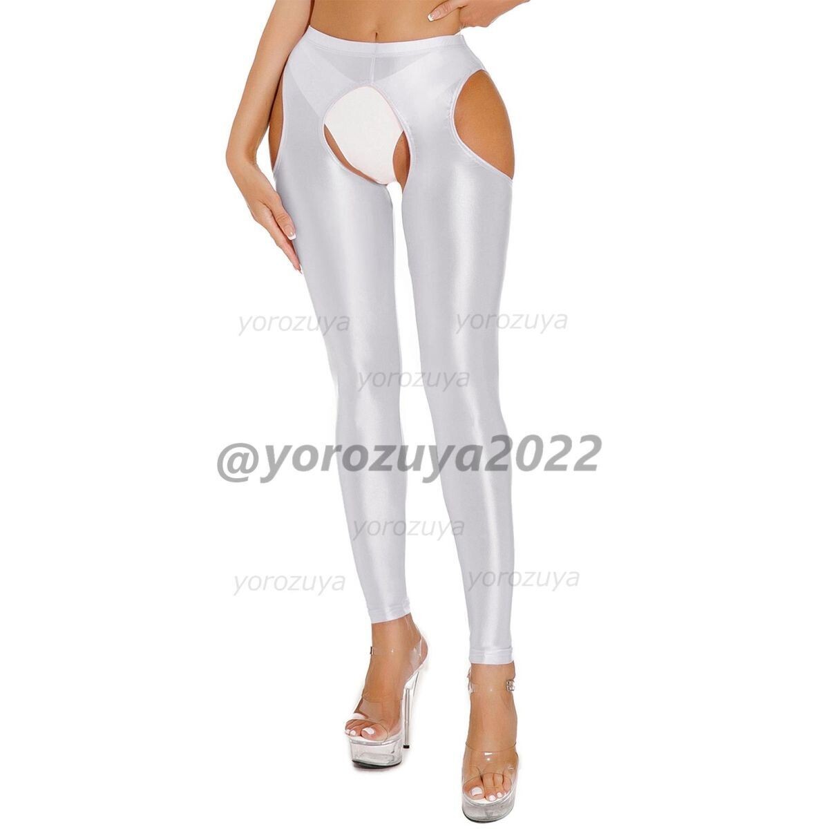 > 131-265-25 光沢 ツヤツヤ レギンス オープン サイドカット【ホワイトXLサイズ】レディース 女性 下着 コスプレ エロ セクシー パンツ .3