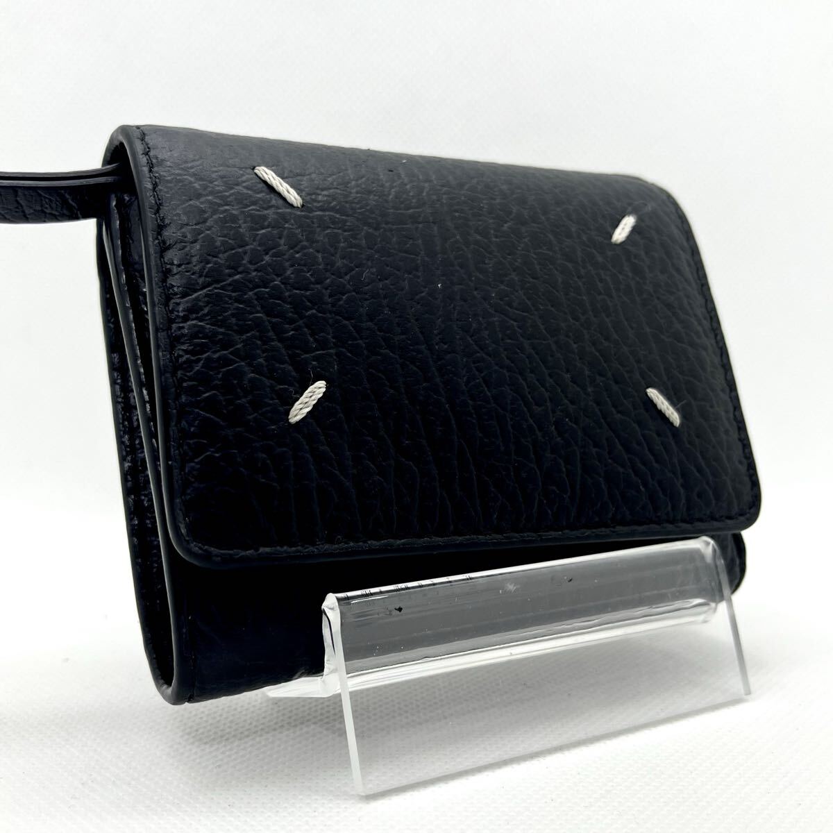 > ●極美品/近年モデル Maison Margiela メゾンマルジェラ マルジェラ 三つ折り財布 4ステッチ カレンダータグ 財布 黒 ブラック 本革 レザー
