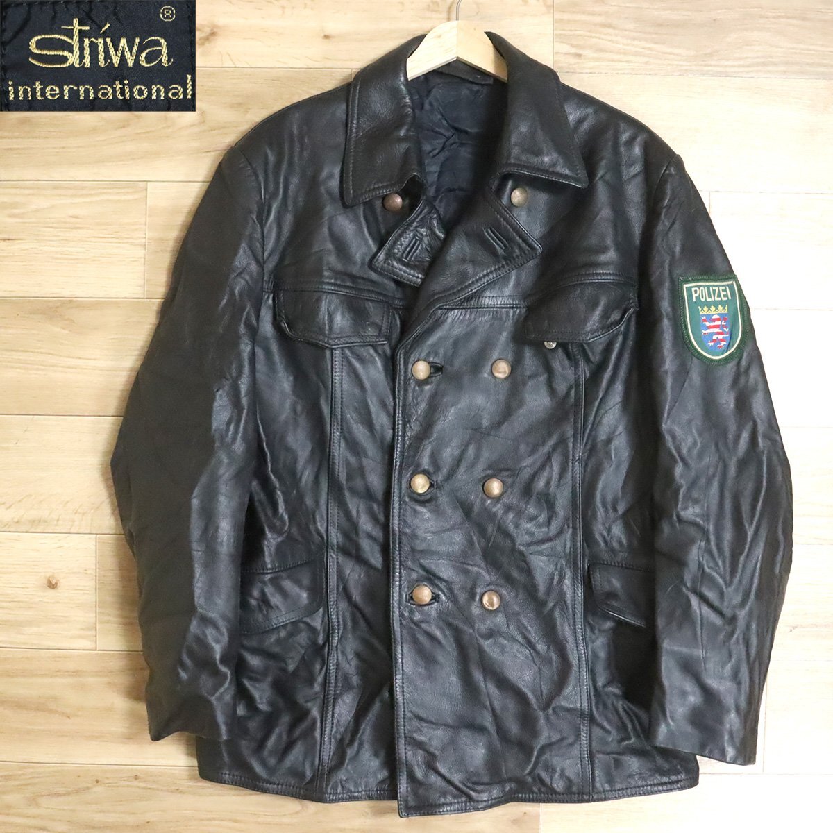 > C4S/D10.11-1 80s ビンテージ ドイツ警察 Striwa ポリスマンジャケット 本革 レザージャケット カーコート ヴィンテージ