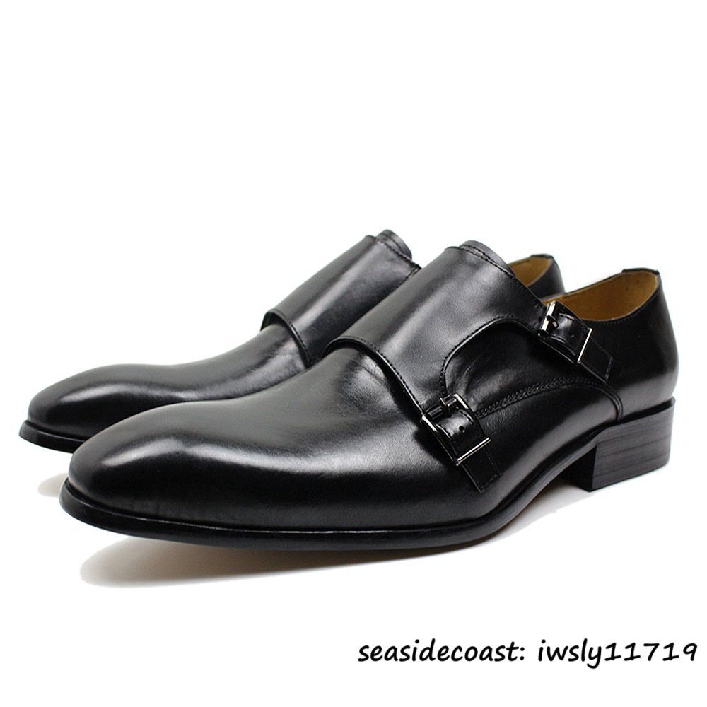 - 最高級★ダブルモンクストラップ 職人手作り 超希少 レザーシューズ 本革 ビジネスシューズ メンズ 革靴 新品 紳士靴 牛革 ブラック 28.0cm