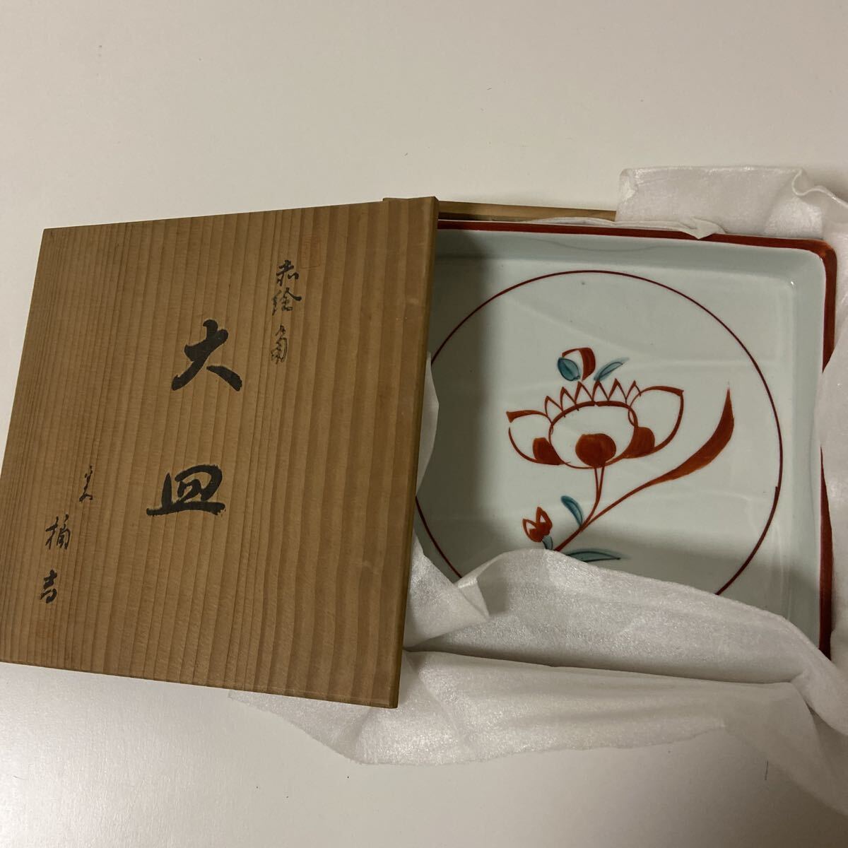 - ★1円スタート★ 中古 橘吉 赤絵角 大皿 3-4493