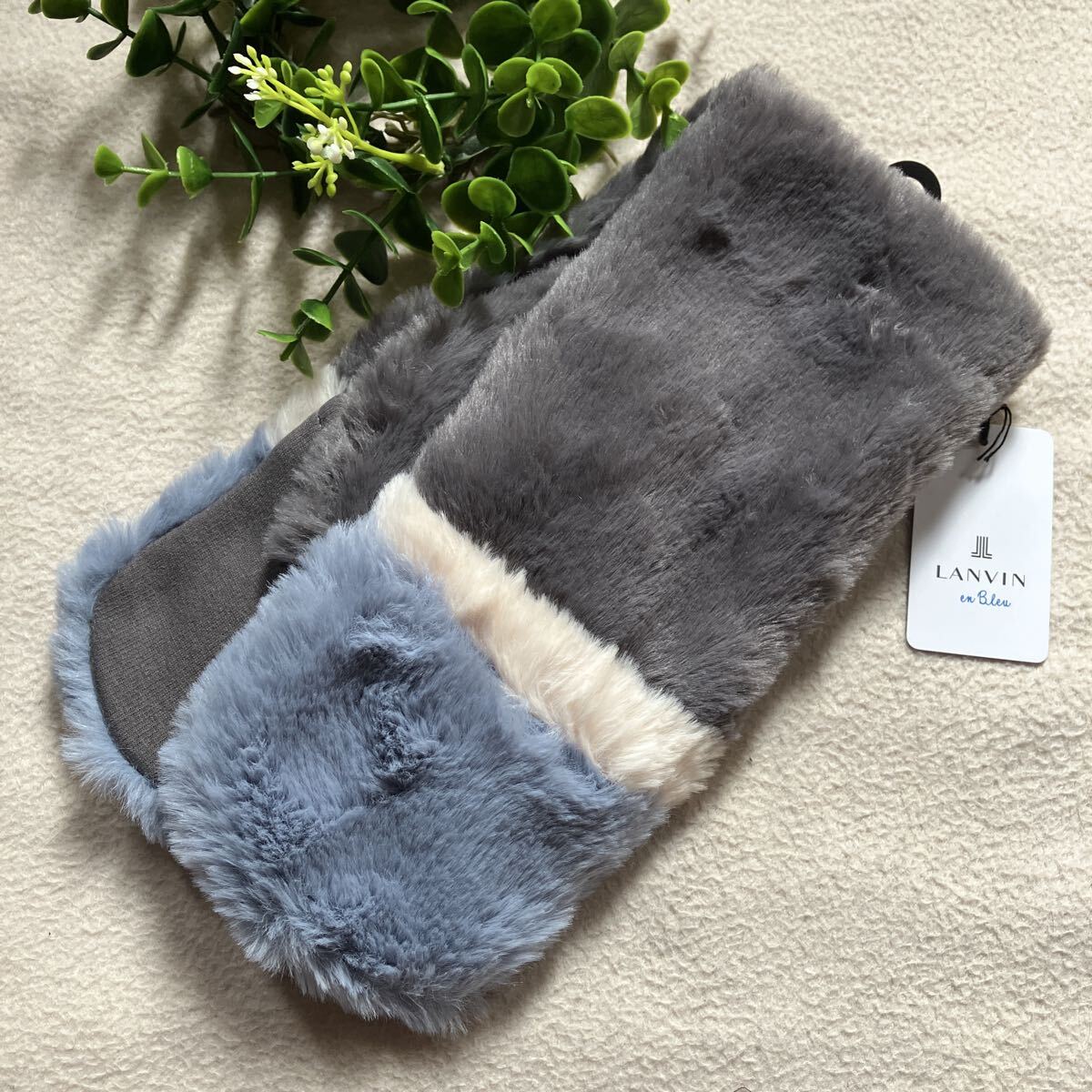 > ★新品★ LANVIN en Bleu ランバン オンブルー ふわふわ 指先が出る ミトン 手袋 レディース グレー/ブルー/ホワイト