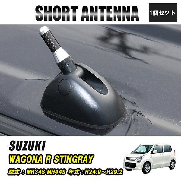 - ワゴンRスティングレー ショートアンテナ 車 ラジオ カーナビ ステレオ 好感度 ユーロ 3.5cm 銀 カーボン調