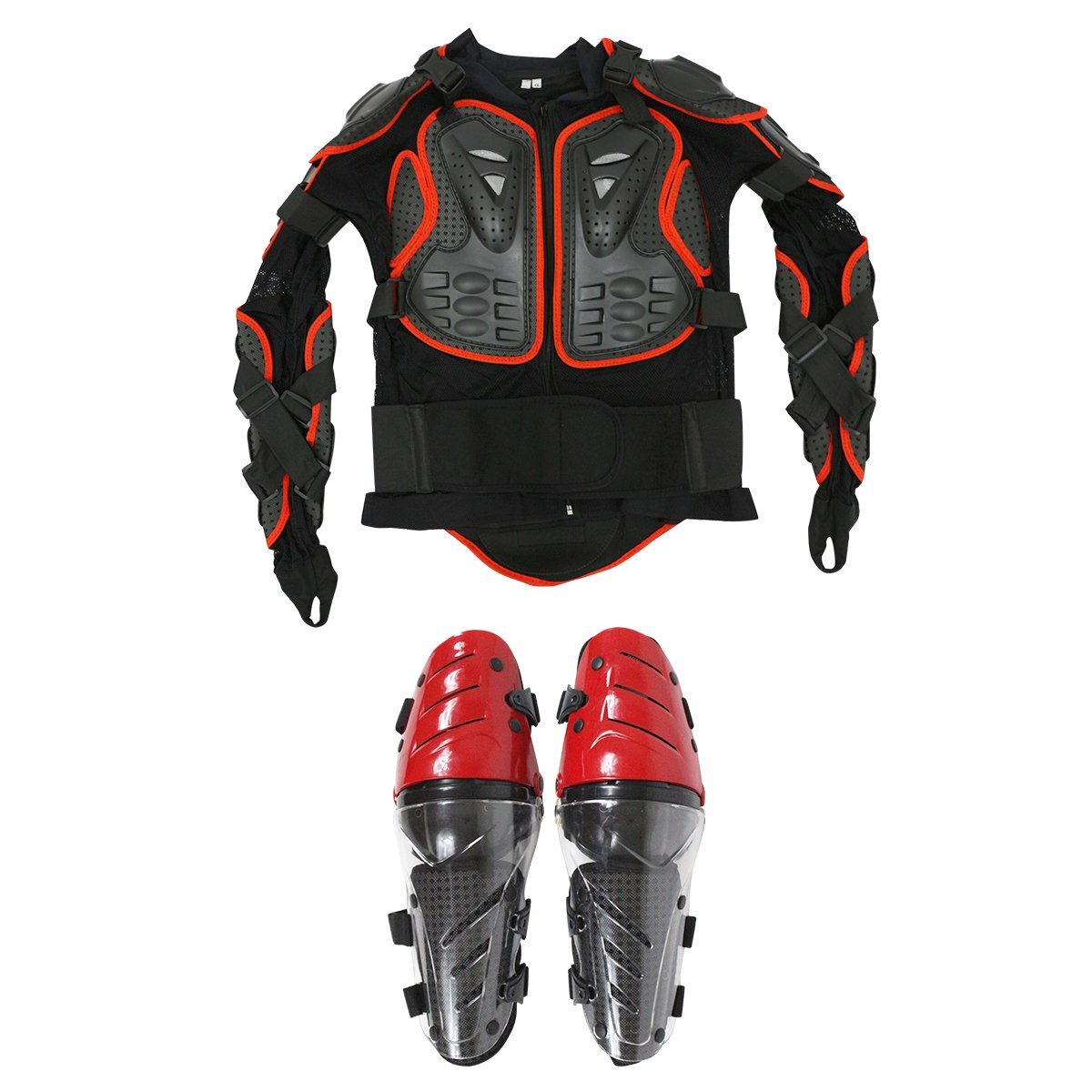 - 『セット4』バイクウェア ボディープロテクターセット XLサイズ 長袖プロテクター(レッド)&ニールガード(レッド) 膝当て ひざ インナー