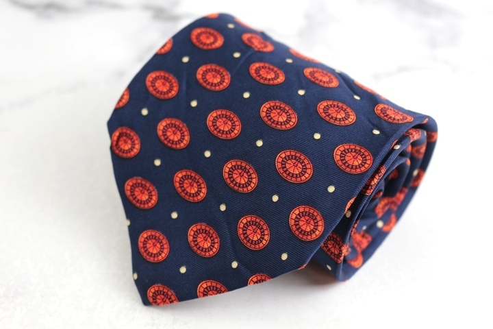 > イヴ・サンローラン ブランドネクタイ YSL 時計 ドット 小紋柄 シルク イタリア製 PO メンズ ネイビー YVES SAINT LAURENT
