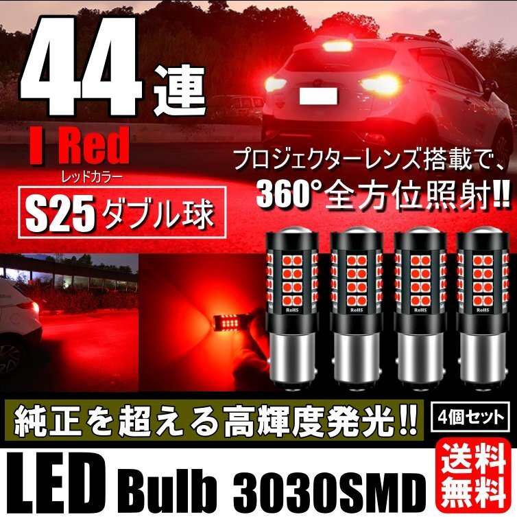 > LED S25 ダブル 44連 ブレーキランプ ストップランプ テールランプ 赤 レッド 無極性 4個セット