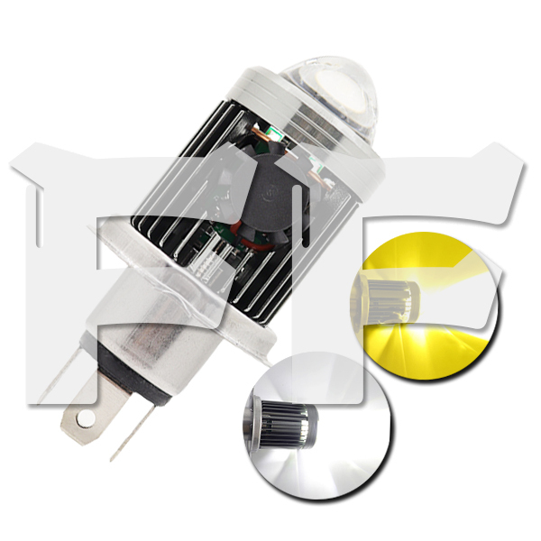 - H4 Hi/Low切替式 30W Hiホワイト6000K/Lowイエロー3000K切替 バイク 冷却ファン付 DC直流&AC交流兼用 LEDヘッドライト 新品