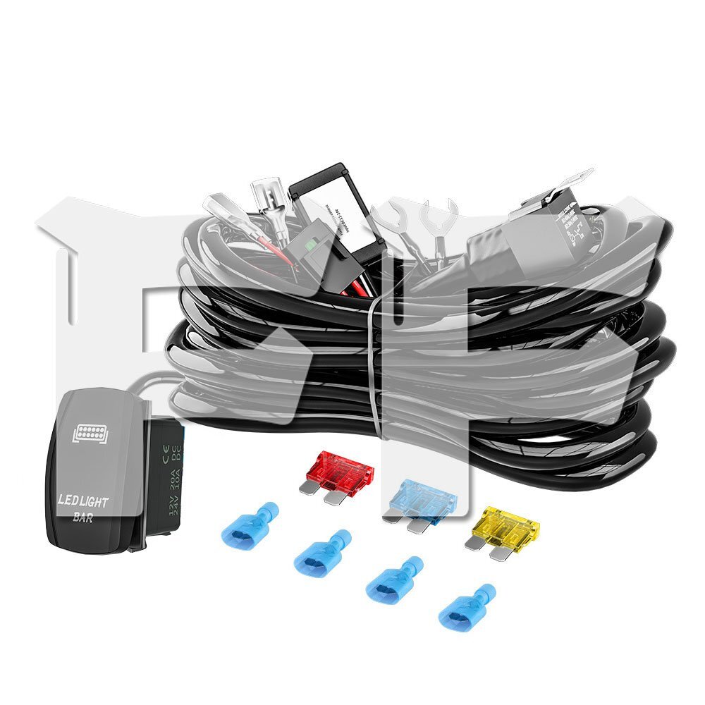 - 送料無料.. LEDライトバー ワイヤーハーネス オン/オフ ヒューズ 10A 15A 20A 作業灯配線 フォグランプスイッチ付き リレーハーネス 2灯用