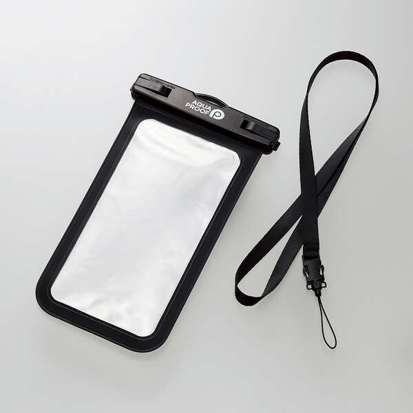> スマートフォン用防水ケース [AQUA PROOF] ネックストラップ付属タイプ ケースを装着したまま動画、音楽鑑賞も楽しめます: P-WPSN04BK