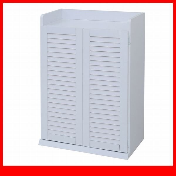 - 下駄箱★ルーバーシューズボックス 幅60cm 単品/靴箱 シューズラック 下足入れ 玄関収納/薄型 可動棚/ホワイト 白家具/限定/SGTA-0101/a4
