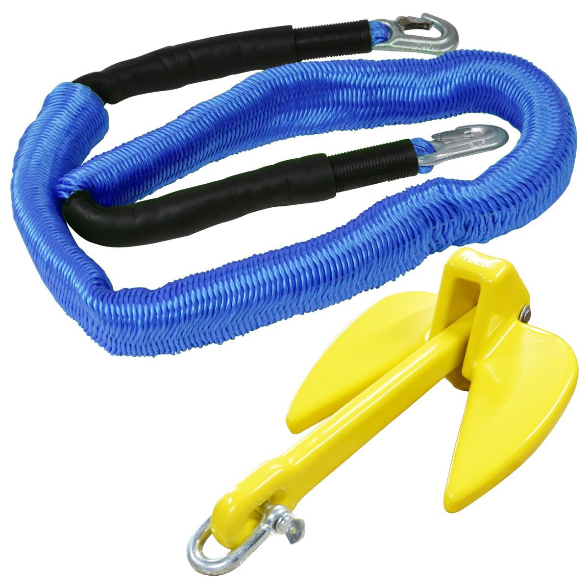 - 超人気セット! ジェットスキー用 PVCアンカー イエロー 10LBS 4.5Kg & 伸縮のびのびアンカーロープ 2mから6m ブルー 青 すぐ使える!