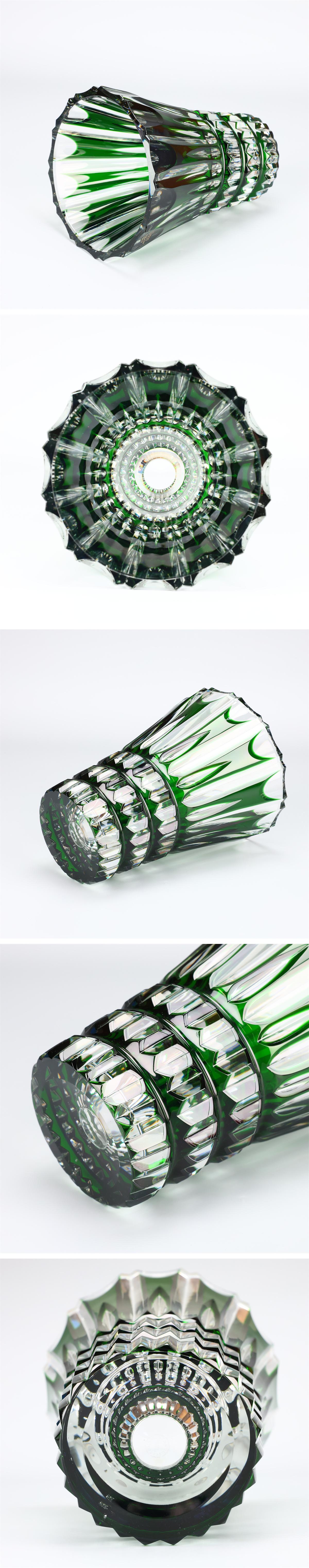 - 【吉】PC953 【SAINT LOUIS】 サンルイ クリスタルガラス 緑被せ カット 花瓶 高20㎝/共箱付 本物保証 美品S!