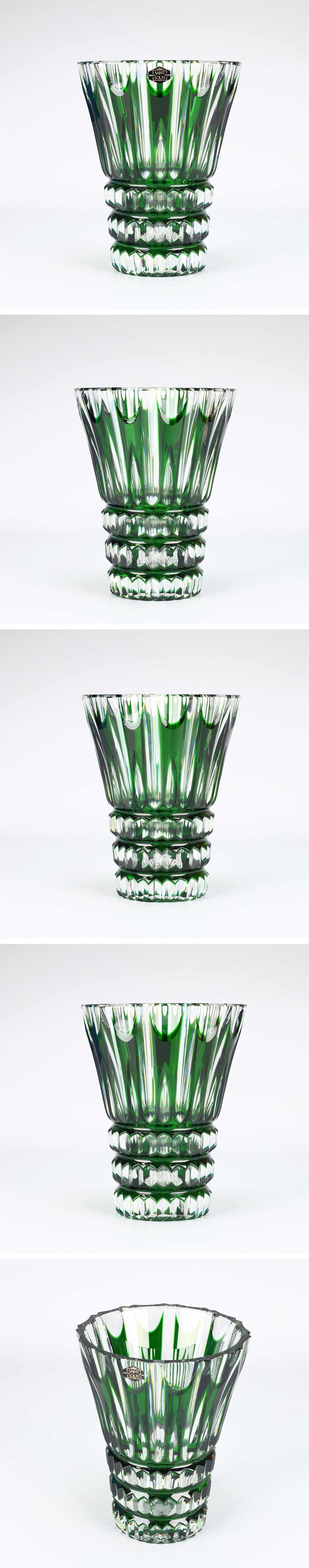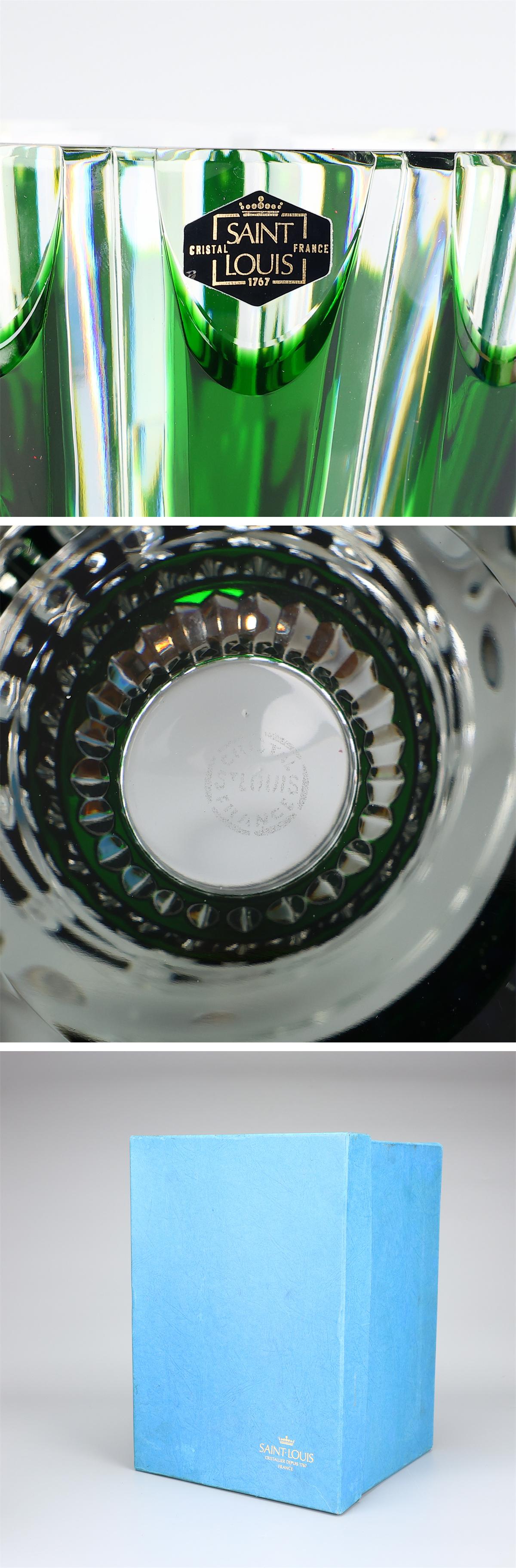 > 【吉】PC953 【SAINT LOUIS】 サンルイ クリスタルガラス 緑被せ カット 花瓶 高20㎝/共箱付 本物保証 美品S!