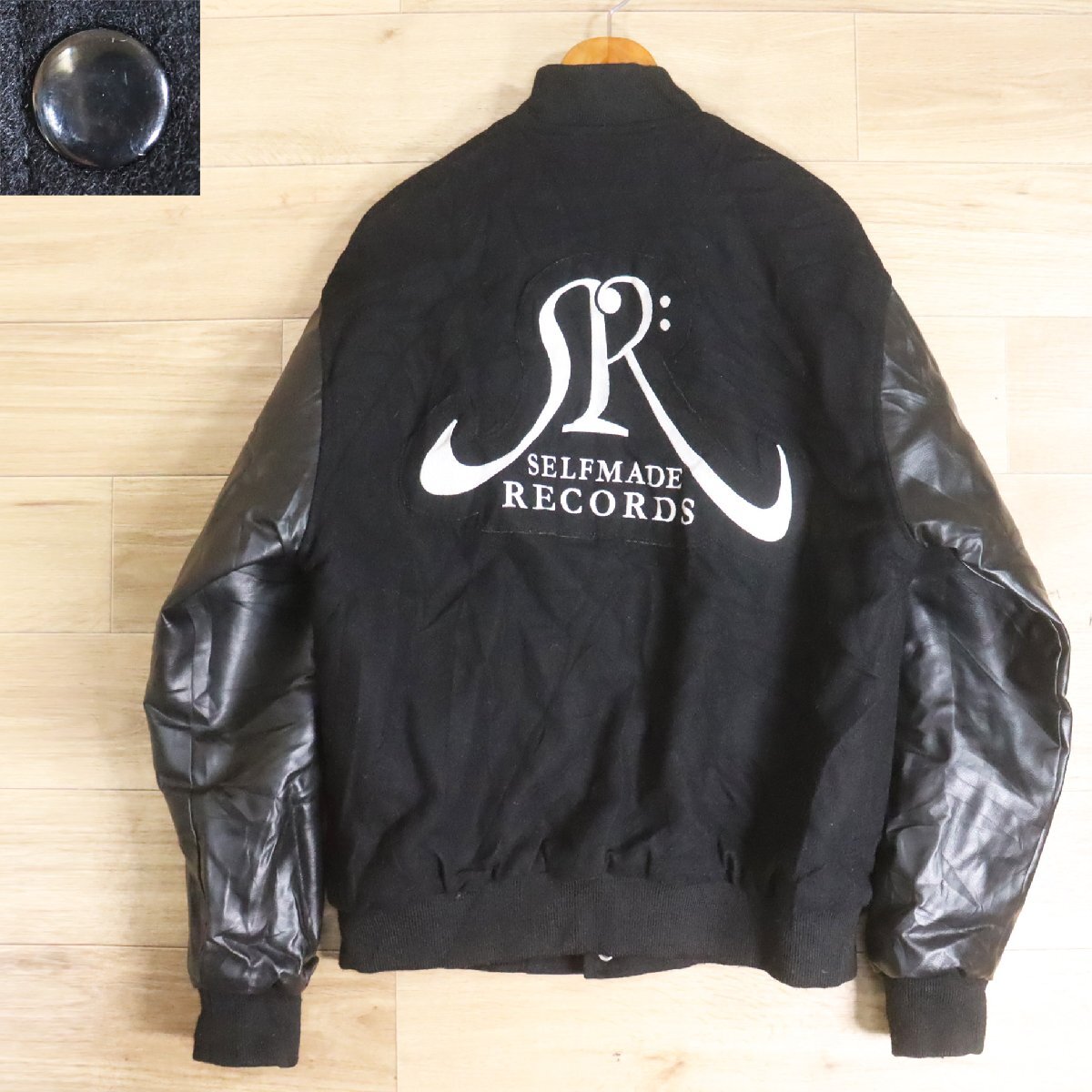 > G6R/Y6.6-2 アメリカ古着 袖革ウールスタジャン 合皮 アワードジャケット バーシティジャケット 刺繍 ブルゾン M ブラック