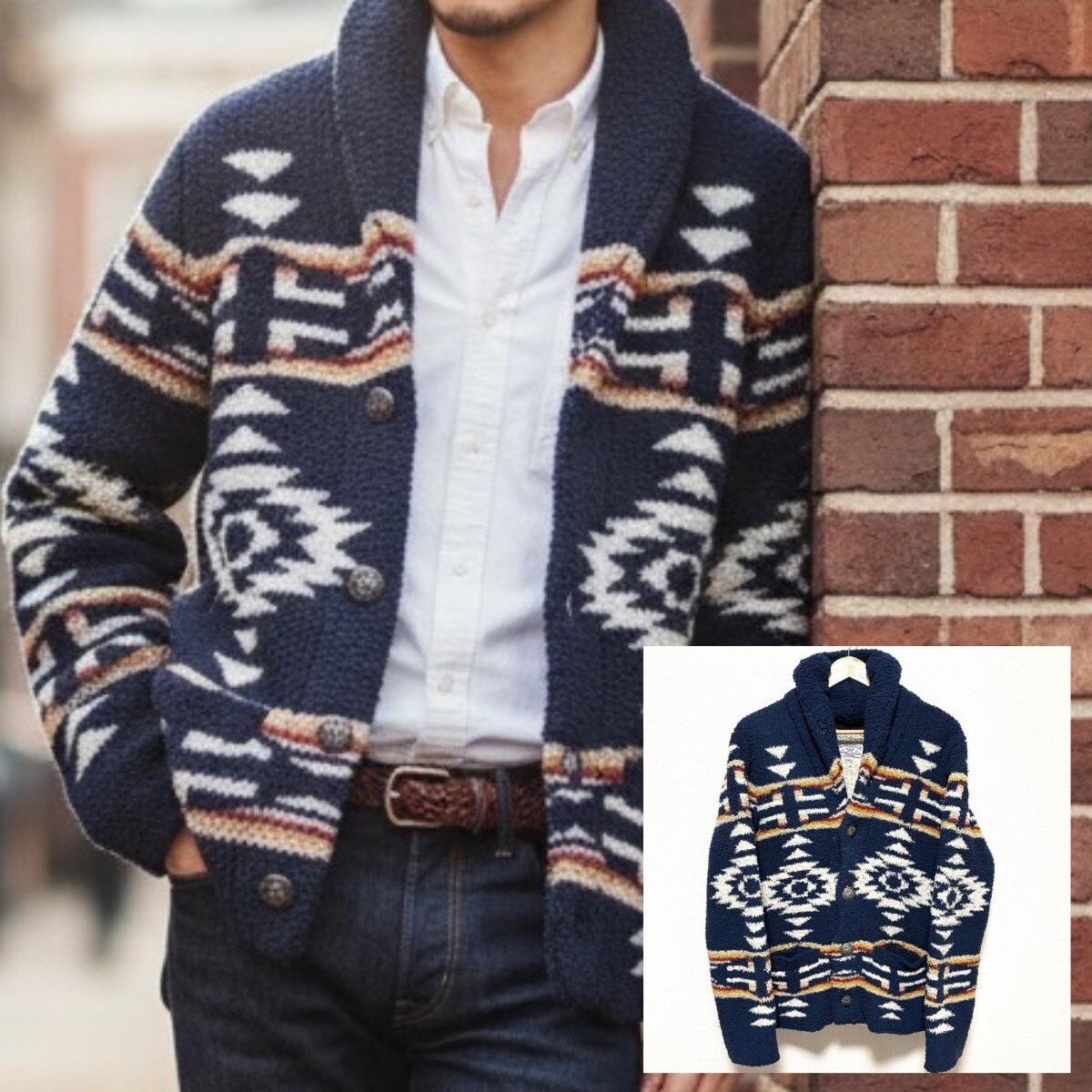 - 肉厚もこもこ◎【ANTIBALLISTIC】アンティバルリスティック ジャケット カーディガン ショールカラー ネイティブ柄 ブルー系 M / Y26989zz