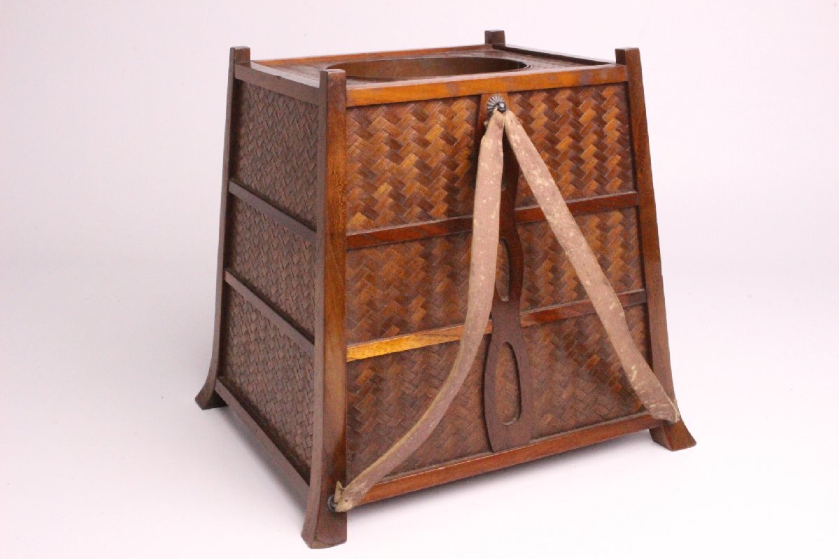 網代 道中背負い籠 花入 ※銅落とし「合箱」