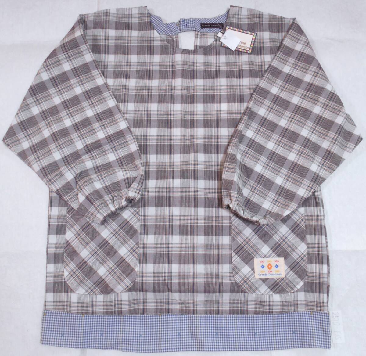 - グレイ、ベージュ系の格子に青と白の小格子の婦人割烹着/袖付きエプロン/LL寸/2510-F15/未使用