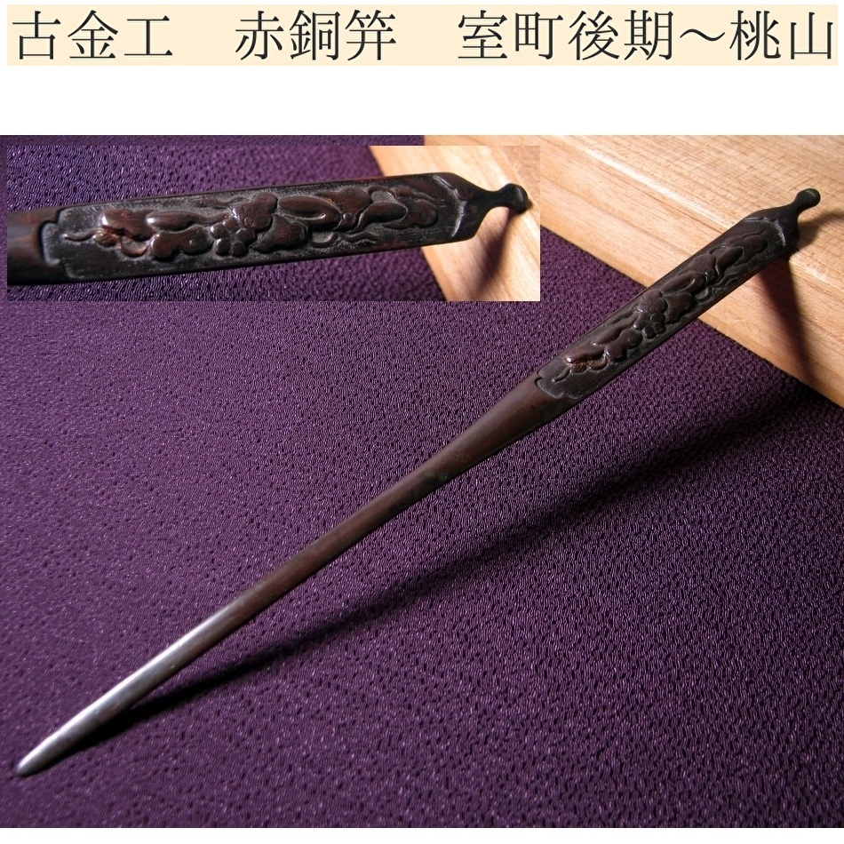 - 時代武具 古金工 赤銅笄 桐箱付 室町後期~桃山時代/25k002