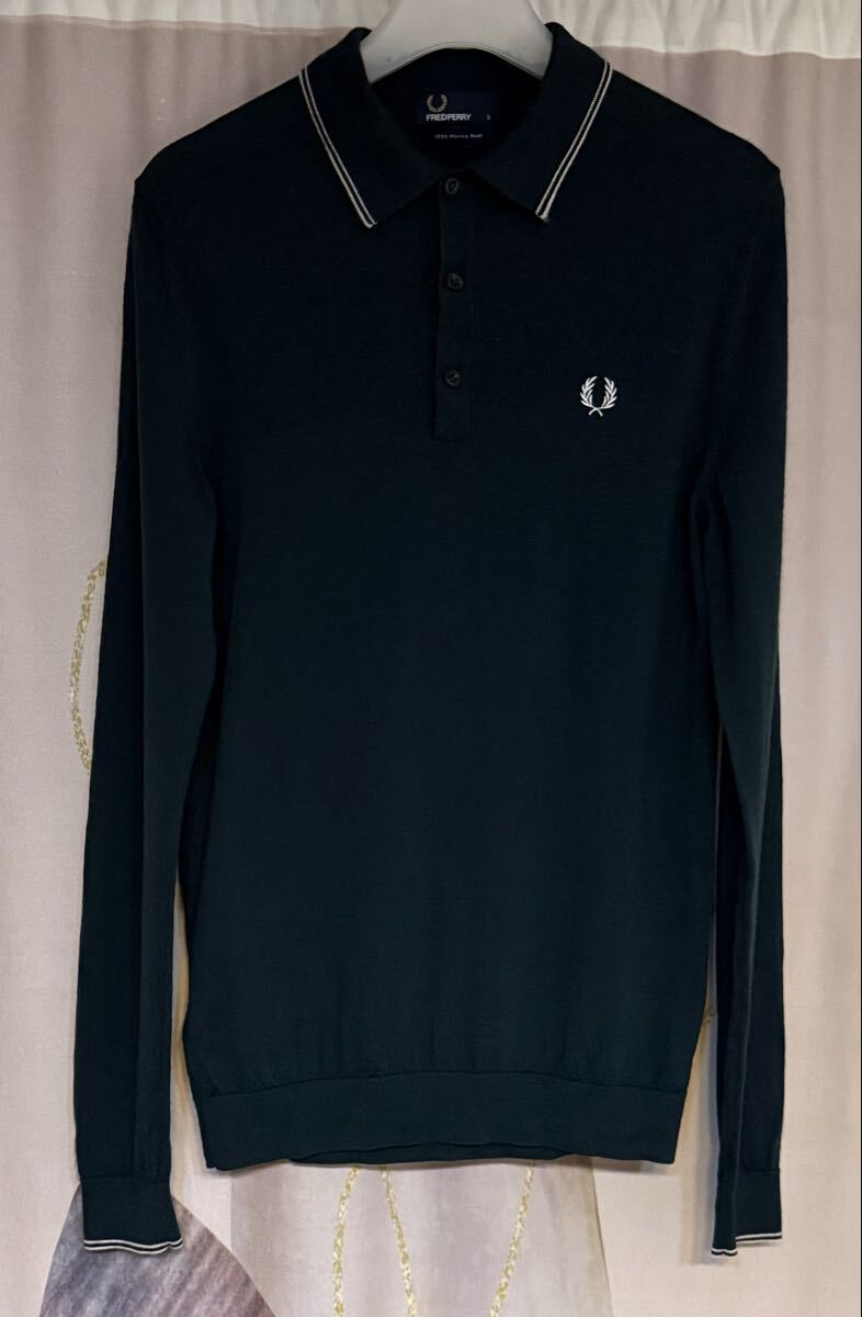 - フレッドペリー メリノウール100% ロング ニットポロシャツ モスグリーン