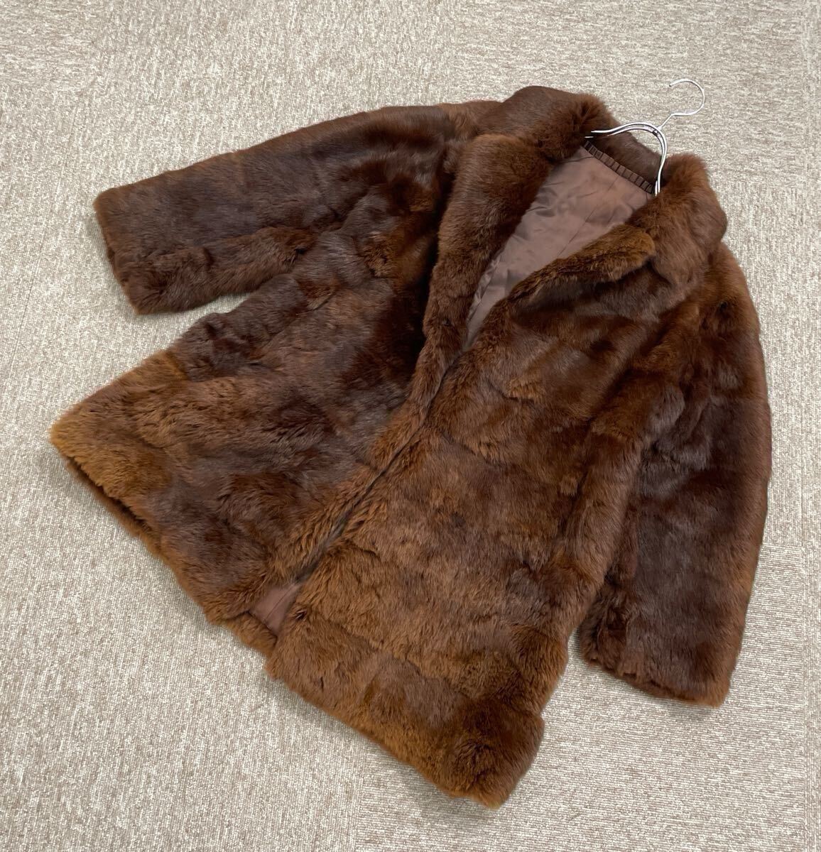 - 【A17】 本毛皮 リアルファー 毛皮コート ブラウン ファーコート 毛並みつやあり ミンク ハーフコート おそらくミンク 豪華 華やか