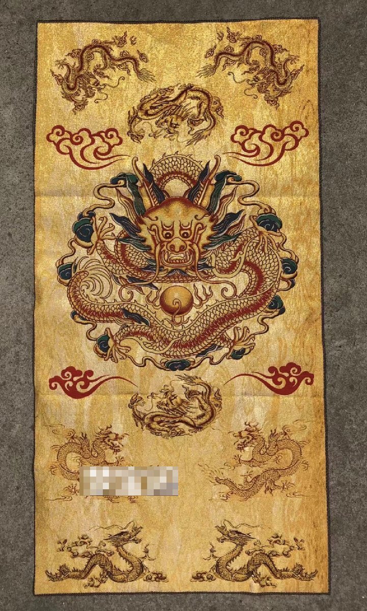 - 中国 ドンカ 金糸刺繍 錦絵 織物 龍山水画 風水 招財 美術 sux193