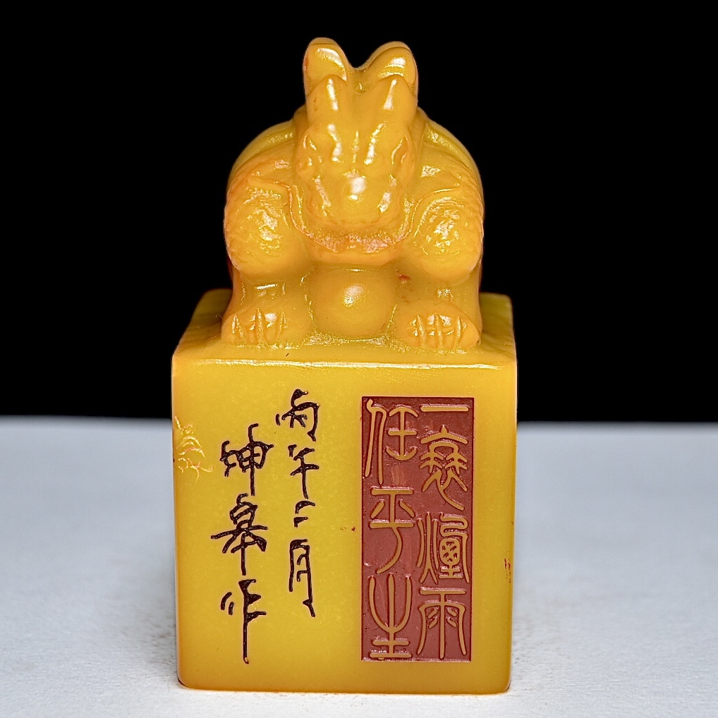 - 旧蔵 寿山石彫 田黄石 印章 文房具 古擺件 古置物 中国古玩 骨董品 時代物 稀少唐物