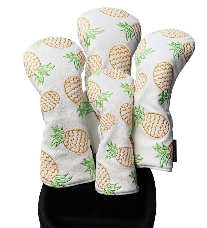 > 新品未使用 4点セット パイナップル柄 ゴルフ ヘッドカバー 3.5共通FW DW UT パター ドライバー GF342