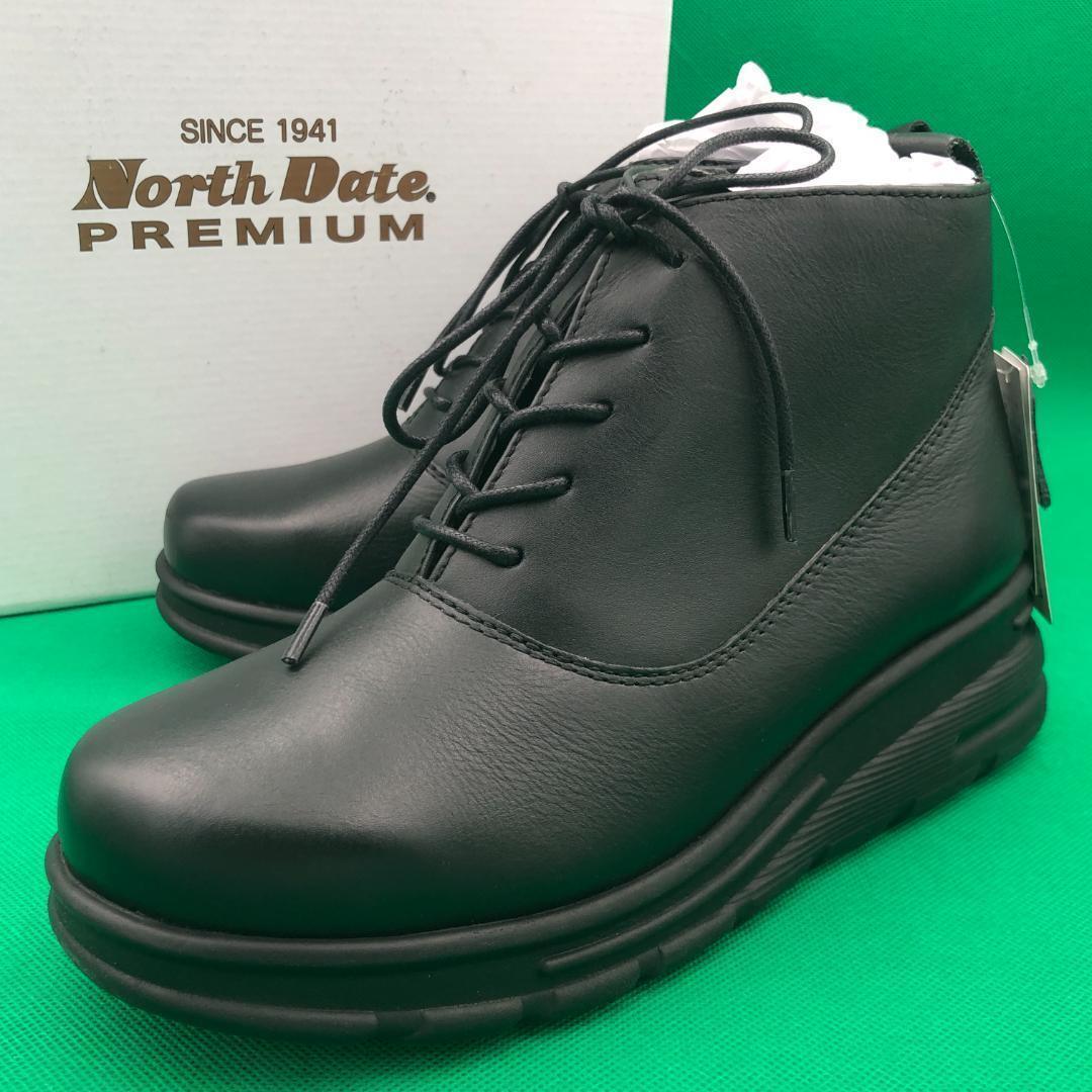 > ノースデイト レザー ショートブーツ 23.5cm★新品 送料無料★MY11238 本革 冬靴 雪道 ブーティ 防寒 防滑 スパイク 滑り止め 5720609