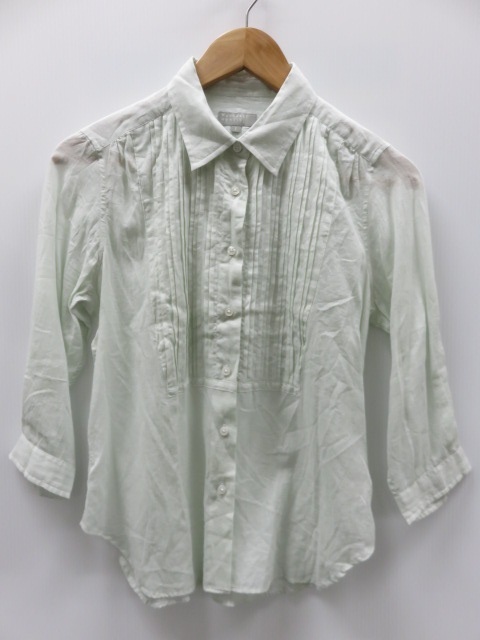 - 【中古品】 マーガレットハウエル MARGARET HOWELL 七分袖 プリーツブラウス コットン100% 〇YR-13342〇