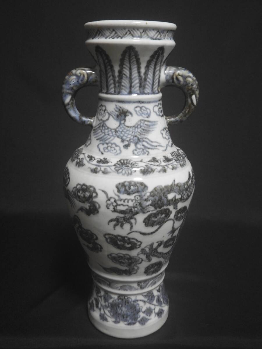 - 花器 龍鳥花雲染付花入 中国美術 安南 【送料無料】