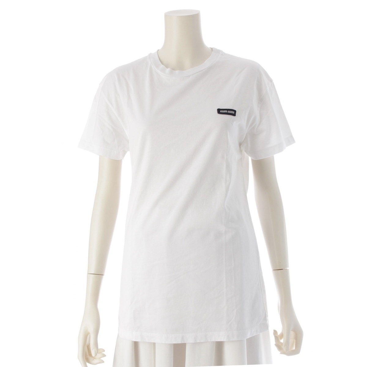 - ミュウミュウ 24年 コットン ロゴ 半袖Tシャツ MJE15 ホワイト S【中古】