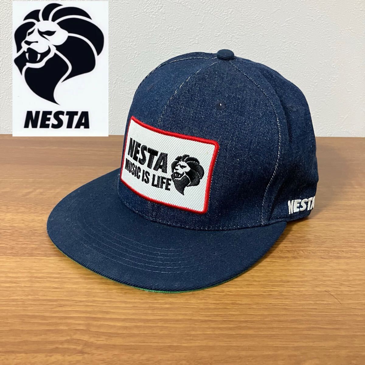 > TA■ 美品 NESTA ネスタ キャップ デニム ロゴ ライオン 刺繍 帽子 ワークキャップ ネスタブランド メンズ 綿100 カジュアル サイズ調整可
