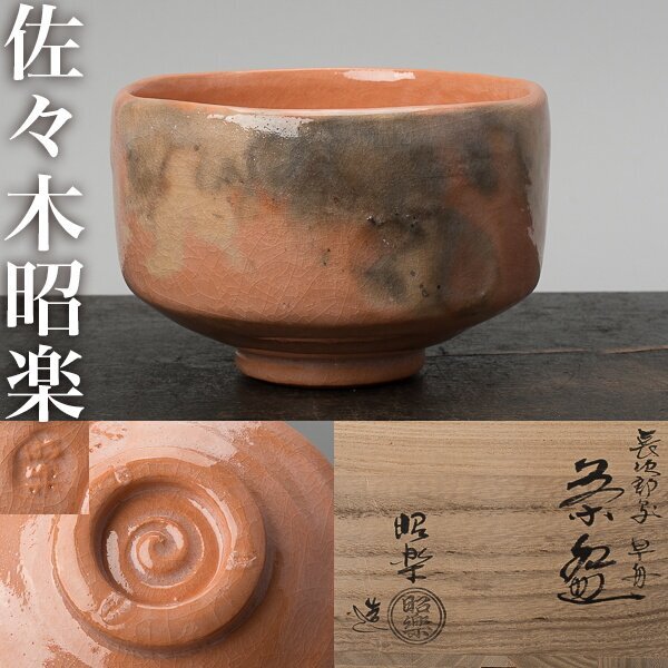 > 【千h1262】佐々木昭楽 長次郎 写し 早舟 茶碗 共箱 赤茶碗 楽茶碗 楽焼