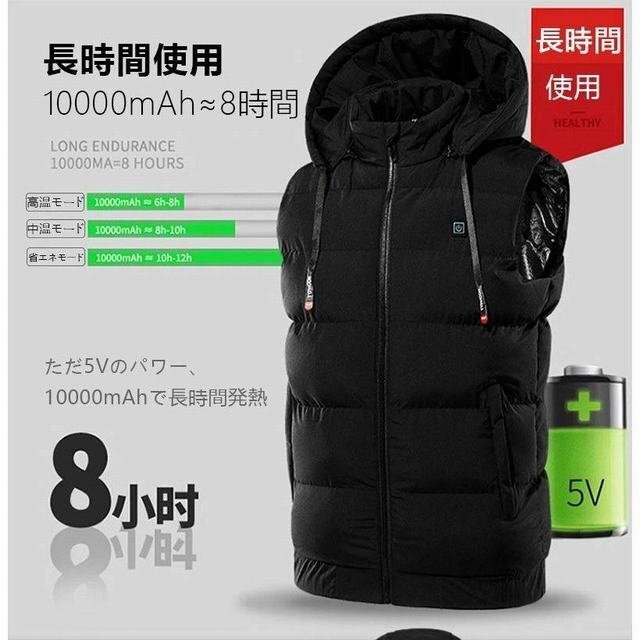 - 電熱ベスト 急速加熱 軽量 ヒーター 加熱ベスト 3のモード ヒーターベスト 電熱ジャケット ベスト 速暖 洗える 丸洗い 防寒 ブラック XL