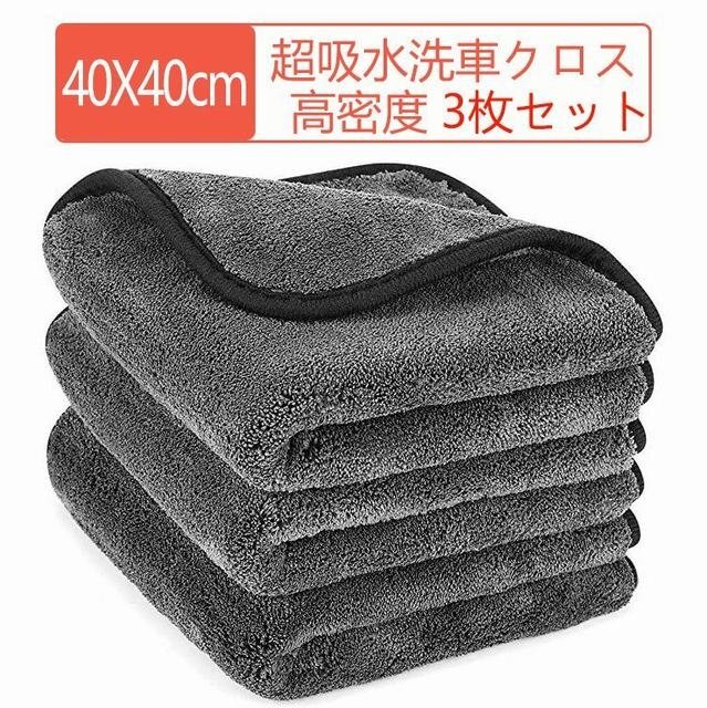 - 洗車タオル 3枚セット マイクロファイバー 超吸水洗車クロス 超厚カー ドライイング 1200 GSM 40X40cm