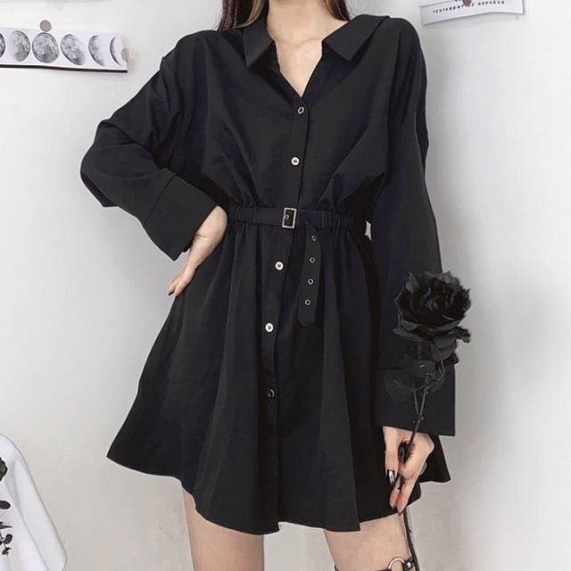 - ワンピース スカート レディース ガールズ Vネック 台形スカート 長袖 ウエストゴム ひざ上 春秋 着痩せ 通勤 通学 Sサイズ