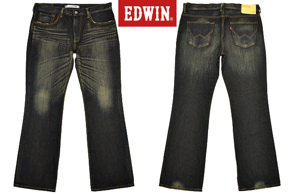 - K-5041★美品★EDWIN エドウイン 401XV★日本製 色落ち抜群 鬼ひげ縦落ち ヴィンテージ加工 濃紺デニム ブーツカット ジーンズ W-36