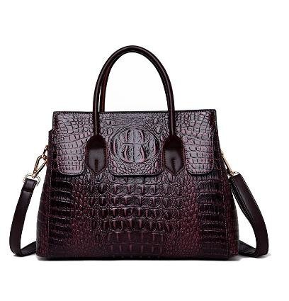 - 高品質 レザー調 クロコダイル柄 ハンドバッグ ショルダーバッグ パープル レディース 女性 【n408】