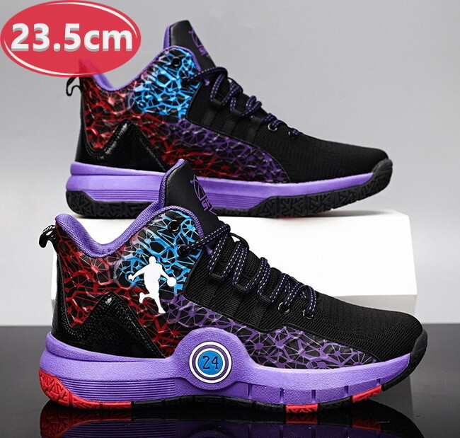- 1スタ ☆ メンズ スニーカー 23.5cm パープル 靴 シューズ 防滑 バスケットシューズ 通勤 通学 旅行 【126】