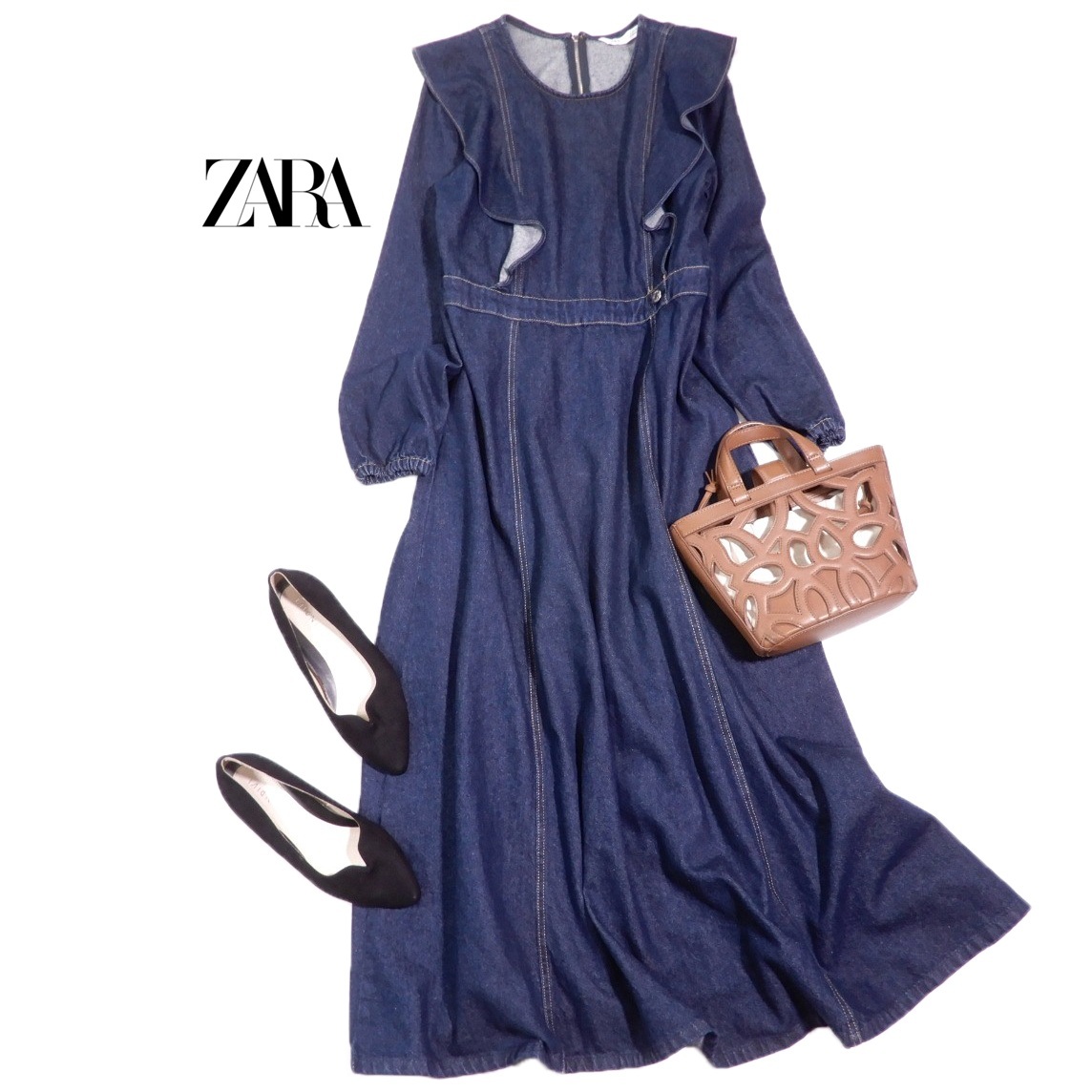 - ザラ ZARA 大人ガーリー☆フリル デニム ワンピース L