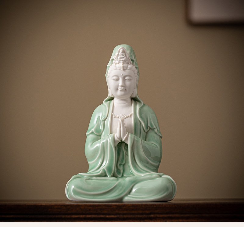 - 送料無料!観音菩薩 観音大士 仏像 観音像 青衣観音 観世音 陶磁器セラミックス 白磁 徳化窯 仏教美術 置物 供養 装飾 収蔵 cdp273