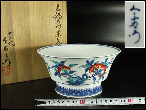 > 【金閣】人間国宝 十二代 今泉今右衛門 色鍋島果実紋 鉢 共箱 未使用 旧家蔵出 送料無料(ZE375)