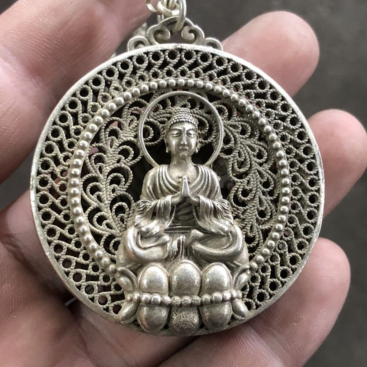 - 送料無料!超美品! 金属鎖 ネックレス 透かし彫り 釈迦摩尼阿弥陀 仏 裝身具 装飾 収蔵品 鑑賞 中国美術品