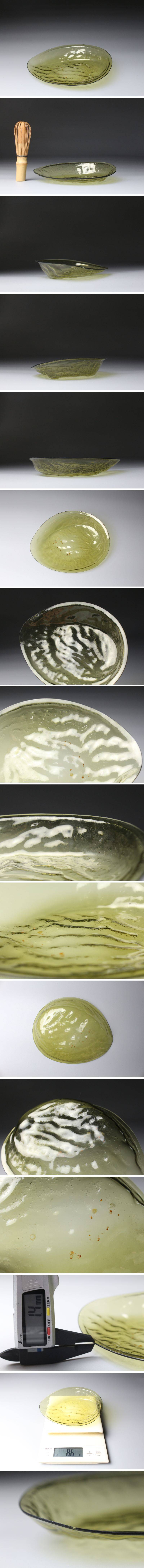 > 【LIG】希少 江戸中期 型吹きガラス 黄色鮑型皿 向付 江戸硝子 ギヤマン びいどろ コレクター収蔵品 [.WQ]25.10