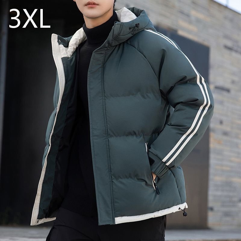 - メンズ中綿コート メンズ アウター ジップアップ カジュアル 防寒 コート 保温 冬服 冬 ジャンパー フード付き グリーン 3XL